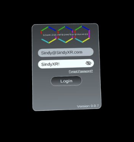 Log in with your previously established SindyXR account or sindytest8@gmail.com / password sindy123456